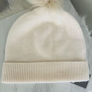 Nordstrom Faux Fur Cashmere Pompom Beanie, Pink, 100% Ivory Cream, NWT