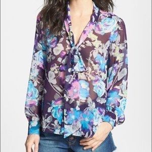 Beautiful floral tie neck blouse! Tie neck style is super in. Bought from Nordstrom. Worn a few times- not my style.