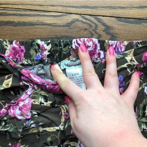 Floral, Olive Green Background with Pink, Purple, and White Flowers, Low-Rise, Nordstrom Pants, (Juniors Sizes)