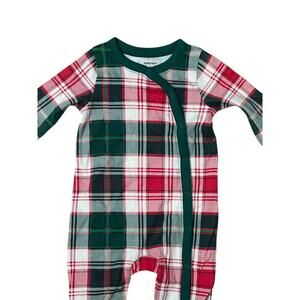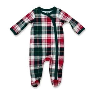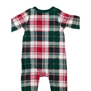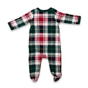 This adorable Nordstrom baby sleeper features a festive green and red plaid design, perfect for the holiday season. Made of 100% cotton, it offers a soft and breathable fit for your little one's comfort. With footed bottoms and long sleeves, this bodysuit ensures warmth and coziness during colder nights.