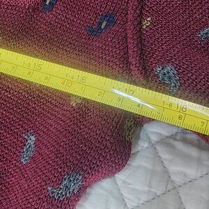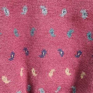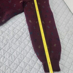 Vintage Men's Paisley Polo Sweater Maroon Burgundy Knitted Pullover Long Sleeve