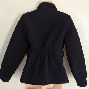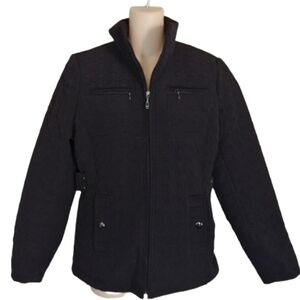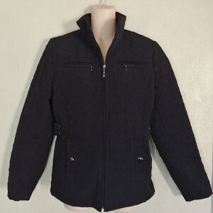 Nordstrom Gallery Black Quilted Zip Up Cinched Back Jacket Size Women Small