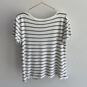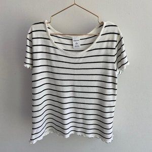 Nordstrom Girls' Ivory & Black Striped Ribbed Cropped Short Sleeve T-Shirt