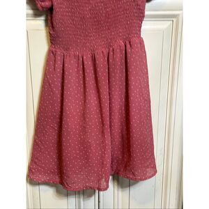 Nordstrom Girls Puff Sleeve Smocked Bodice Micro Dot Dress Mauve Size L/10-12