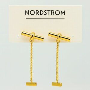 Chic gold bar earrings with chain detail. Ideal for stylish looks.