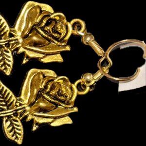 Nordstrom Gold Rose Earrings w/ Intricate Details Brass Beautiful Timeless NWOT