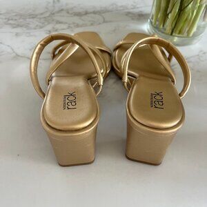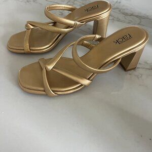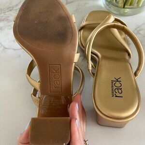 Really comfortable and cute Nordstrom Rack gold strappy chunky heels. Only worn once, in great condition! Size 6.5. You can wear these all night.