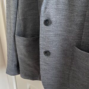 This Nordstrom sport coat in gray offers a structured silhouette with a notched lapel, making it a versatile choice for both formal and smart-casual occasions. Its subtle textured fabric adds a touch of sophistication, ensuring you look polished and stylish. New with out tag never worn from non smoking home