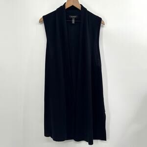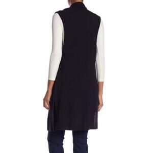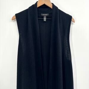 Longline ribbed knit sweater vest. Open front. Split hem. Super soft. Condition: Pre-owned, excellent. Some minor fuzzing consistent with cashmere. No holes, stains, pulls. Size: One Size Color: Black Materials: 100% Cashmere Measurements (approximate): Length: 36" Bust (pit-pit x 2): 46" (open)