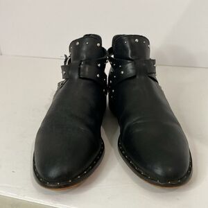 Nordstrom Halogen Hailey Black Studded Ankle Silver Buckle Leather Boots Size 10