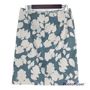 Nordstrom Halogen Size 8 Teal White Floral Knee Length Pencil skirt Stretch