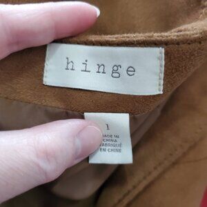 About this item: Step out in effortlessly chic style with this adorable Hinge faux suede mini skirt! Featuring a flattering A-line cut, practical front pockets, and a rich, versatile rich brown color, this skirt is a wardrobe essential. Perfect for pairing with tights and boots in cooler weather or with a simple tee and sneakers for a casual spring/fall look.