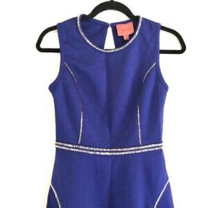 Blue fit and flare backless silver beaded dress by I. Madeline from Nordstrom. Size S, new with tags! Royal blue backless dress with a silver bead detail trim and a fit and flare silhouette. Quality thick ponte material. Slimming and beautiful dress. Silver is one of Fall 2021 trending colors! Would be perfect for a date or a fun night out with the girls! Measurements are approximate (laying flat): Pit to Pit: 15” Waist: 13” Length: 33”