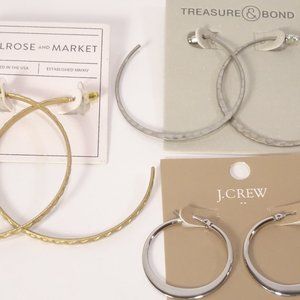 Nordstrom J.Crew Silver and Gold Hoop Earrings Set of 3 NWT