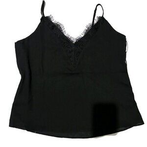 Abound Women's V-Neck Lace Trim Camisole sleeveless Black 00410