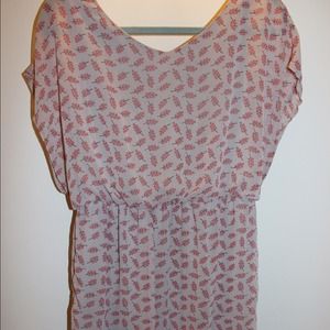 This neutral color dress is perfect for the summer. It's leaf details give it its own unique style. Length is about mid-thigh.