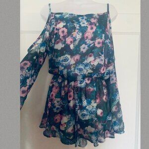 Nordstrom Let Them Eat Cake Open Cold Shoulder Floral Pattern Flowy Romper SZ M