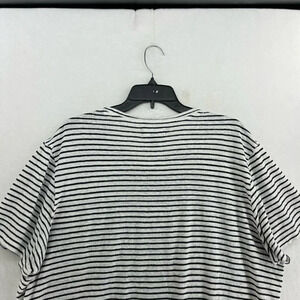 Nordstrom Linen Shirt Womens Large Black White Striped Round Neck Relaxed Fit