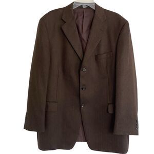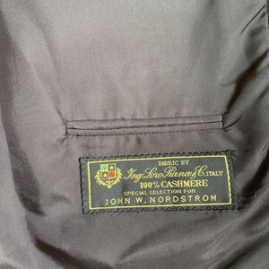 Brand: Nordstrom, from Loro Piano 100% cashemere. Men's sport coat/blazer. Size: 46T. Color: brown. Pattern: herringbone. Condition: excellent pre-owned condition. The only flaw is that there's a little discoloration sport on lining near the chest posket, from dry cleaning. Otherwise no visible flaws.