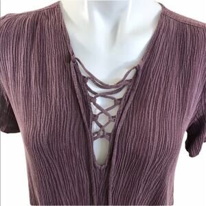 Lush wine coloured lace up front top, small. Longer in the back than the front