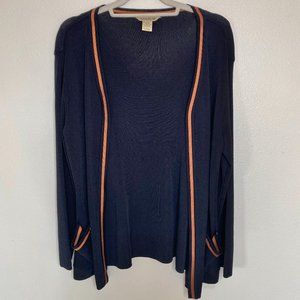 Nordstrom Marlis Black & Brown Open Front Cardigan Preppy Minimalist
