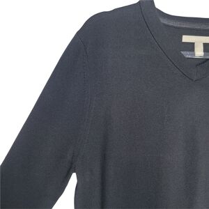 Nordstrom Men's 100% Extra Fine Merino Wool V-Neck Pull Over Sweater. In midnight black. Sweater is light weight and super soft.