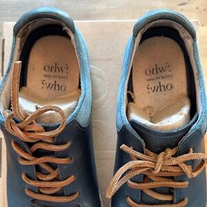 Elegant dark leather oxfords with brown laces. Perfect for formal occasions.