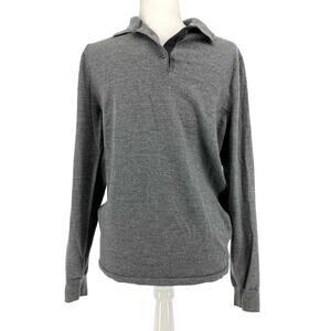 Nordstrom Mens M Gray 100% Merino Wool Button Collar Sweater