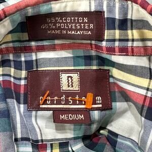 Nordstrom Mens Shirt Size M Blue Yellow Plaid Button Up Long Sleeve Cotton Blend