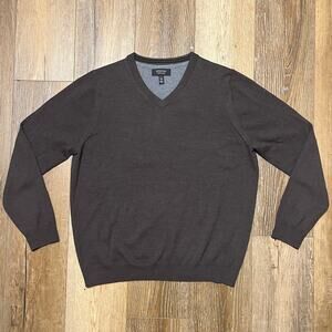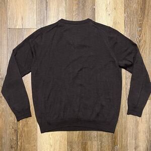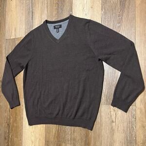 Nordstrom Men's Shop 100% Extra Fine Merino Wool V-Neck Sweater Brown Lg Preppy