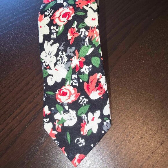 Nordstrom Men's Shop Floral Skinny Tie - Black background with Pink, red, white flowers.
