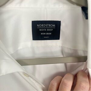 Nordstrom Men’s Shop Non-Iron Trim Fit Solid Cotton Dress Shirt 15.5 32-33 White