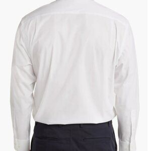 Rounded, single-button cuffs and a crisp point collar detail a classic, plain-weave cotton dress shirt with a Smartcare finish for wrinkle-free wear.