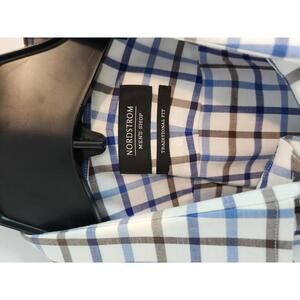 Elevate your wardrobe with this stylish Nordstrom Men's Shop traditional fit shirt. This shirt features a classic check pattern in a pleasing combination of blue, brown, and white, perfect for both casual and formal occasions. Made from 100% cotton, the fabric is designed to be wrinkle-free, ensuring you look sharp all day long. With a traditional fit, it provides comfort and style, making it an essential addition to any man's closet. - Classic check pattern - 100% cotton, wrinkle-free - Traditional fit for comfort - Ideal for casual or formal wear - Durable and easy to maintain.