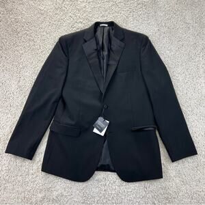 See photo for measurement and stain on shoulder. Did not wash, new with tags. Price tag says 42R while the tag inside the jacket says 42L. Please check measurements for specific fit.