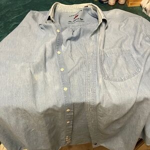 Nordstrom Men’s Xl Long Denim Button Down Shirt Logo VTG Classic Western