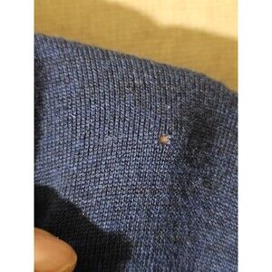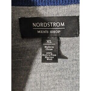 Stay stylish and cozy with this Nordstrom Merino Wool Henley Sweater in a timeless blue color. This preppy sweater features a 1/4 zip design and is made with high-quality merino wool for ultimate comfort and warmth. Despite having a small flaw bite near the shoulder (as shown in pictures), it is barely noticeable and won't detract from its overall appeal.