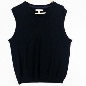 Nordstrom Merino Wool Sweater Vest Men's Large Black Extra Fine V Neck