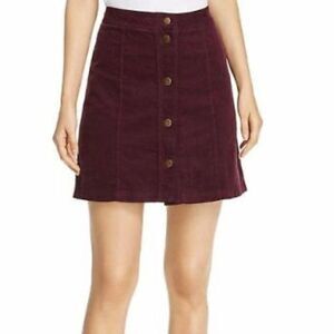 Nordstrom NWOT Three Dot burgundy a-line corduroy mini skit gold buttons - small