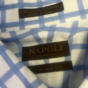 Elevate your wardrobe with this classic Nordstrom Napoli men’s dress shirt in a crisp blue and white check pattern. Crafted from luxurious Egyptian cotton, this shirt offers a soft, breathable feel with a sharp, tailored appearance. Perfect for professional settings or polished casual wear.