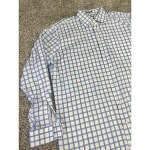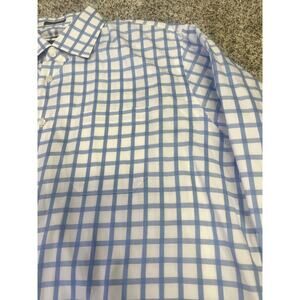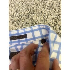 Nordstrom Napoli 17-34 Dress Shirt Blue Check Egyptian Cotton Button-Up Mens