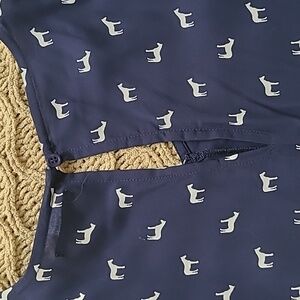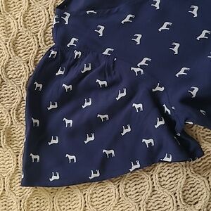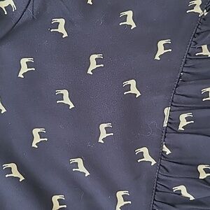 Charming navy dress featuring a playful white horse print. Perfect for casual outings.