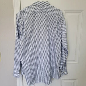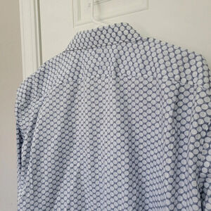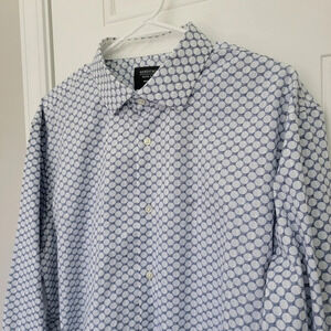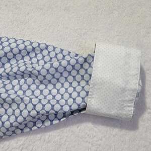 Nordstrom Non Iron Trim Fit Blue White Circles Contrast Cuff Button Down Sz L