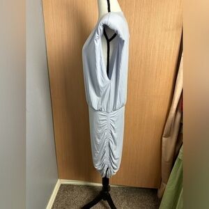 Nordstrom OPEN EDIT Strong Shoulder Periwinkle Ruched Mini Dress, Size Large (v)