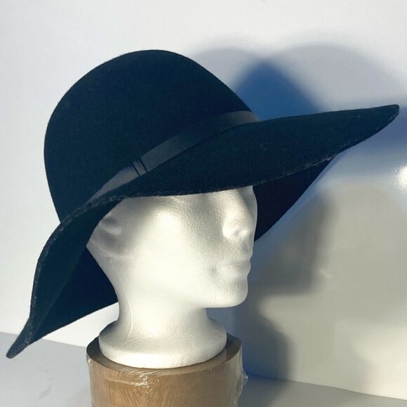 Nordstrom One size (adjustable) Black wool floppy hat classic essential boho