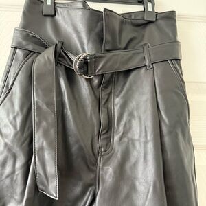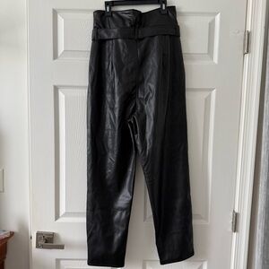 Nordstrom Open Edit Faux Leather Belted Pants 2021 Black Medium Never Worn NWOT