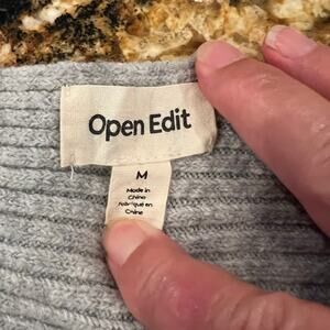 Nordstrom Open Edit Gray Ribbed Dolman Sleeve Cotton Blend Sweater - SIZE M