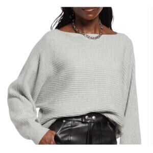 SIZE MEDIUM - Nordstroms Open Edit Gray Ribbed Dolman Sleeve Cotton Blend Sweater is perfect for any occasion. can be styled as a boatneck or off the shoulder,