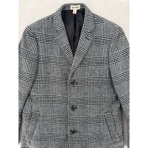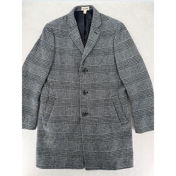 Nordstrom Open Edit Mens Glen Plaid Coat Black White Check Overcoat Large NWOT