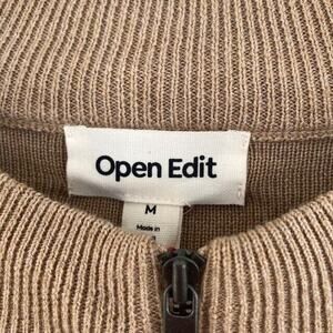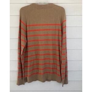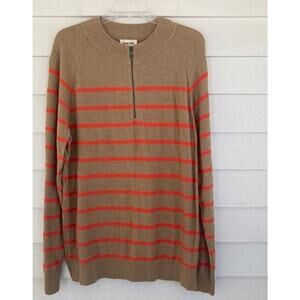 Nordstrom Open Edit NEW Cotton Blend Tan & Orange Stripe 3/4 Zip Knit Sweater M